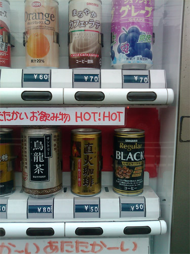 寒い日に、自動販売機で暖かい缶コーヒー。かじかんだ手で、ゴトンと出て来たばかりの缶を両手で包んで・・・救われた感じがしますな。たま〜にだけど、hotとcoldを間違えて悔しい思いをする。先日見かけた自動販売機。こりゃ間違えない、大丈夫だと思ったけどグレープジュースもホットか!とツッコミを入れる。値段を見て、さらにぎょぎょぎょ!