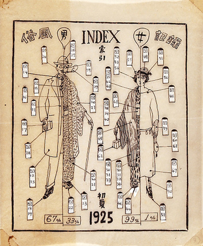 出典:今和次郎「東京銀座街風俗記録統計図索引」1925年工学院大学図書館所蔵
