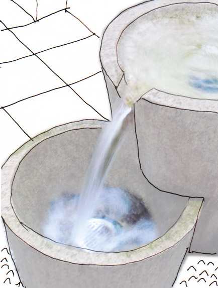 今日のような暑い日は、顔や手や、頭から水を被る。ひんやりして、とても気持ちがいい。