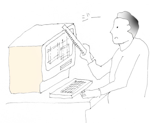 そういえば、CADソフトが出始めたころ、(もう20年ほど前になるけど)設計図を描いていて、建物の高さの寸法ツールがわからず、モニター画面に定規を当ててたこともあったっけ・・・