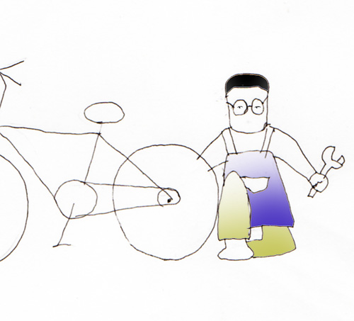 昨年末購入した自転車の定期点検で、いつもの自転車屋のおじさんに見てもらった。