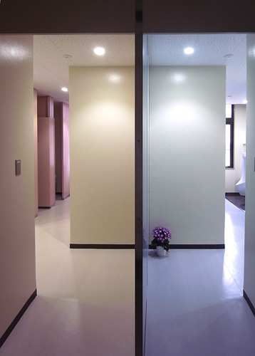 例えば、経験上、床・壁・天井を白くしても、家具に赤いものを入れると、壁も天井も、うっすらと赤みを帯びる。