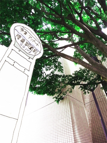 で、問題のバス停はそのケヤキの木漏れ日が落ちる位置にあった。