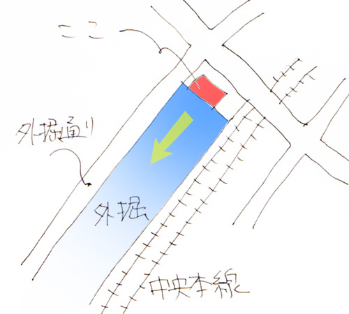 そのレストランは、外堀の長手に対して直行するように店が開いていて・・・・・