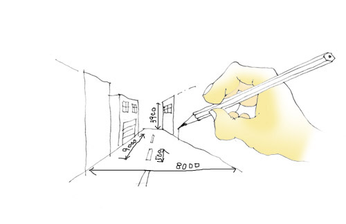 何度か見た事があるヨレヨレした線のスケッチだけれど、そこには道の広さや塀の高さ、厚みなど諸々の「寸法」が記入されていた。